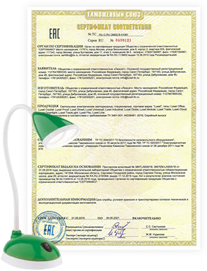 Сертификат на лампы