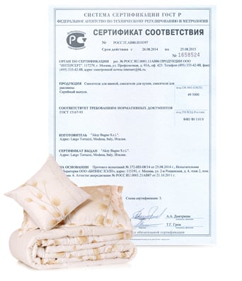 Сертификат на одеяла |